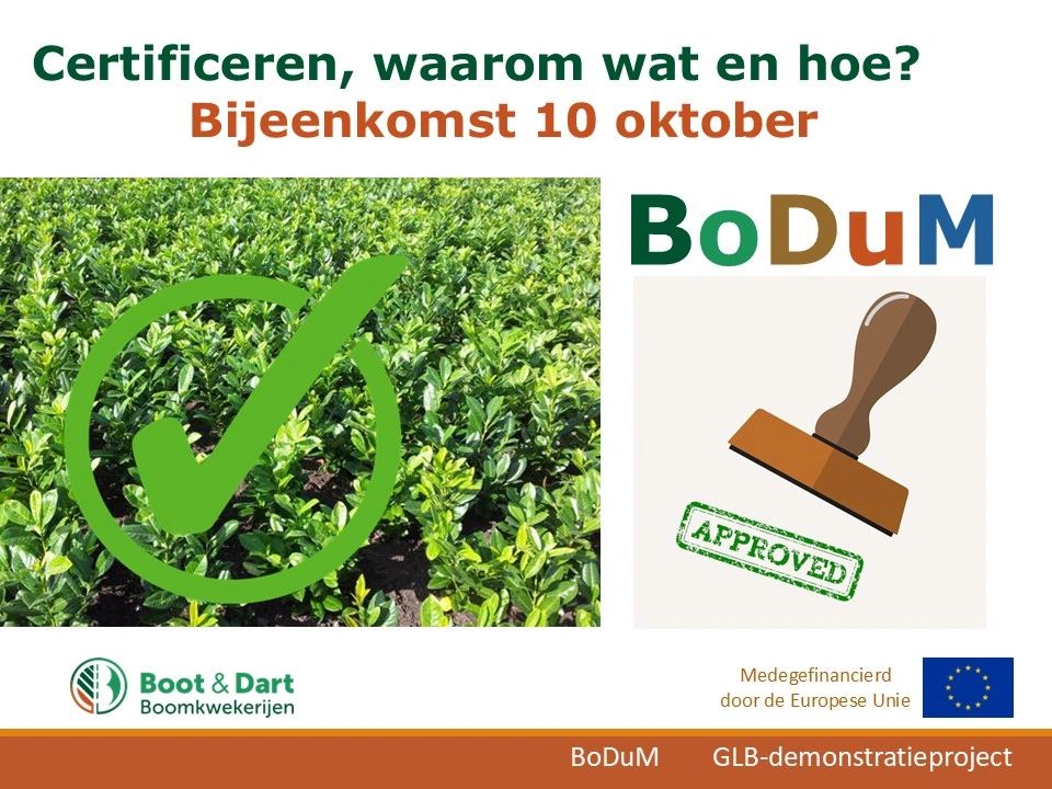 On Friday 10 October, a meeting on sustainability certification will be held at Boot & Dart Boomkwekerijen bv in Boskoop.