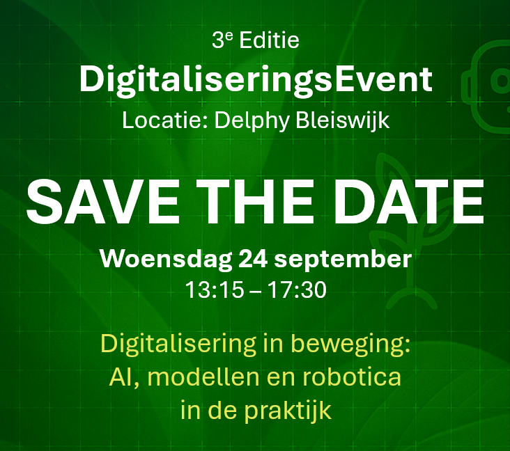The 3rd edition of the Digitalization Event will take place at Delphy Bleiswijk on Wednesday, September 24th. |