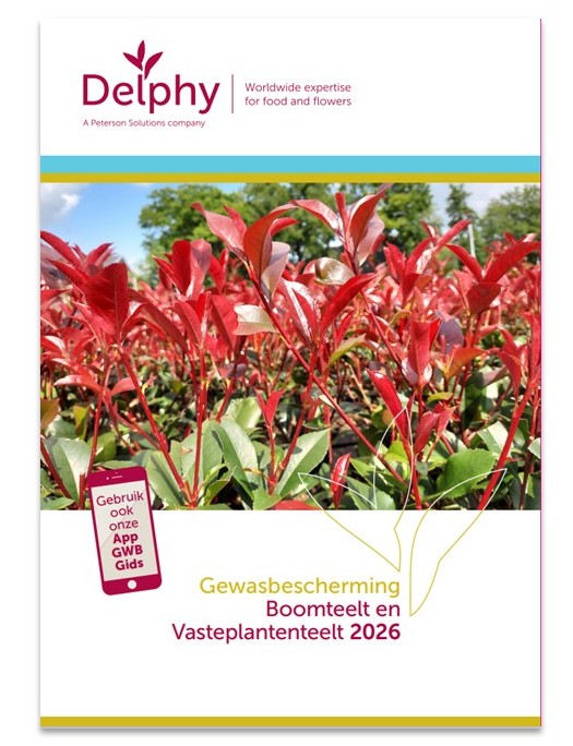 Eind maart verschijnt de Delphy gewasbeschermingsgids ‘Gewasbescherming Boomteelt en Vaste Plantenteelt 2026’ plus de bijbehorende Gewasbeschermingsapp. Kwekers die nog geen abonnement hebben, kunnen de gids inclusief inlogcode voor de app nu bestellen en zijn dan weer volledig actueel.